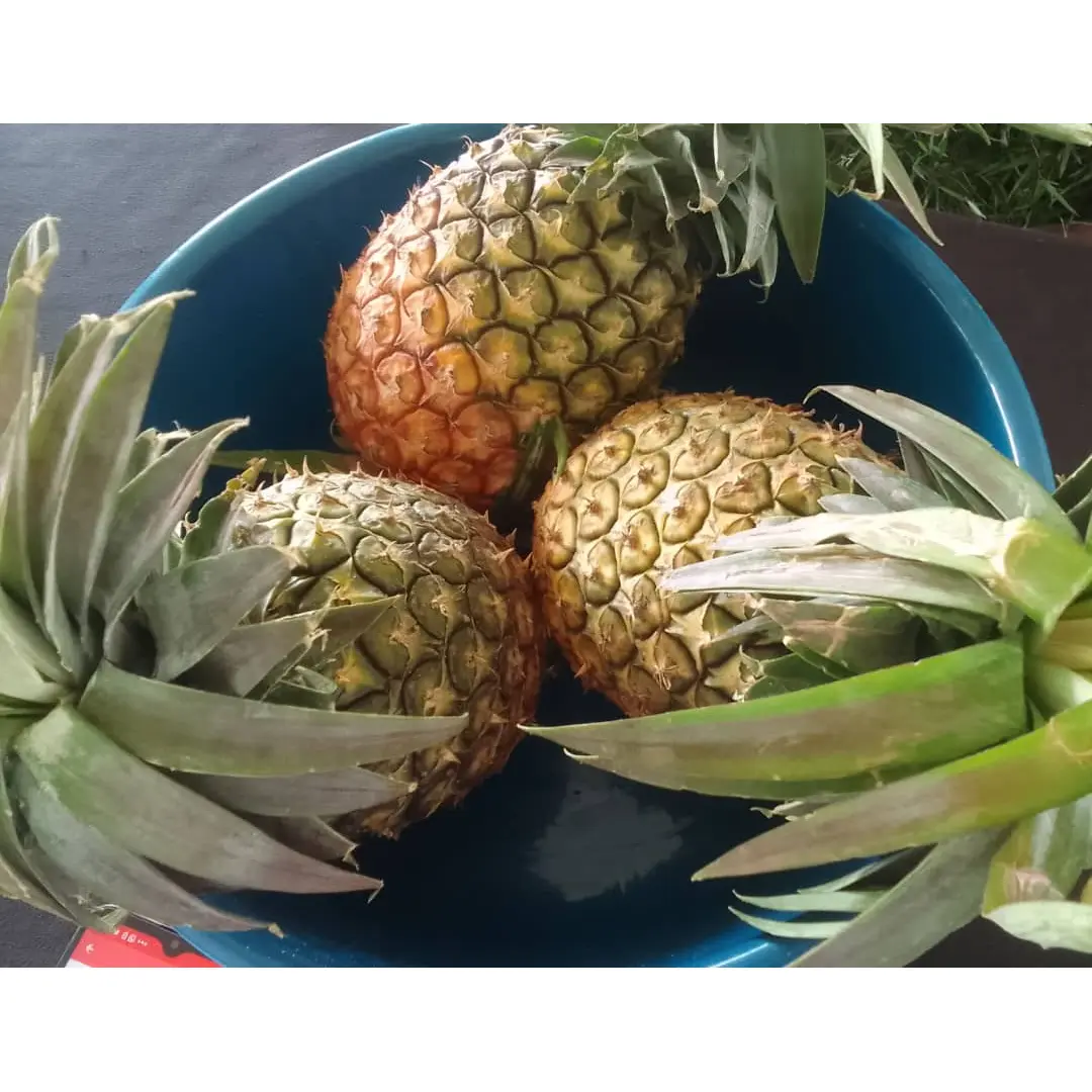 Pineapple is a tropical fruit with a tough, spiky skin and sweet, tangy yellow flesh. It's juicy and flavorful, making it popular for eating fresh, blending into juices, or adding to desserts and savory dishes. Rich in vitamin C and antioxidants, it's a healthy choice for consumers. For selling, pineapple has good market demand due to its versatility, long shelf life when stored properly, and year-round appeal in both local and export markets.