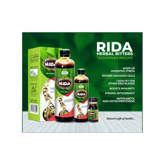 RIDA is proudly made in Nigeria with herbs that are exclusively of western origin and have been proven to help with  general well being as well as helping to manage many  body ailments with testimonies ranging from diabetes, high blood pressure, high cholesterol, obesity, weak erection, low libido, infertility, etc.
